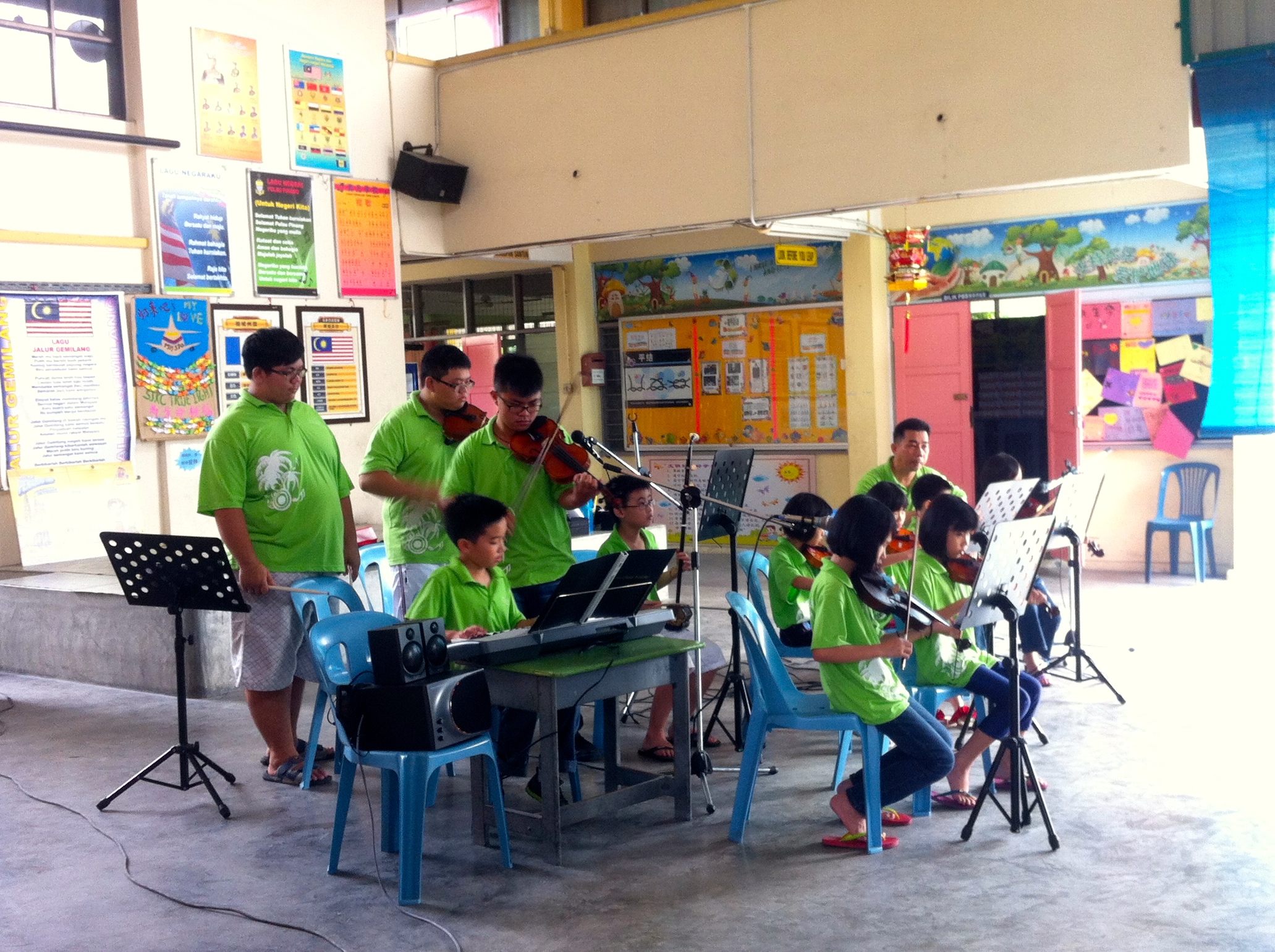 This morning, I went to True Light Primary School situated at Juru for an orchestra performance. The performance started at 11:00am and we played a total of 6 songs. The songs were :
